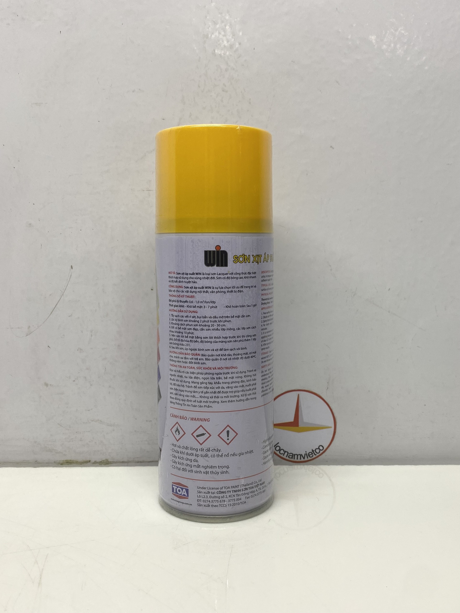 Mua tại TiktokSƠN XỊT WIN MÀU VÀNG 218 400ML Sơn xịt WIN là loại sơn Lacquer với công thức đặc biệt thích hợp sử dụng cho vùng nhiệt đới. Sơn có độ bóng cao, khô nhanh và độ kết dính tuyệt hảo. Công dụng: Sơn xịt WIN là sự lựa chọn tối ưu để trang trí và bảo vệ cho các vật dụng nội thất, văn phòng, thiết bị điệ Thành phần: Chất tạo màng ; Bột màu ; Dung môi , Phụ Độ phủ lý thuyết:0.6 - 1 m²/lon/lớp (tùy thuộc vào màu) Đóng gói: 400ml/chai; 12 chai/thùng Thời gian khô :