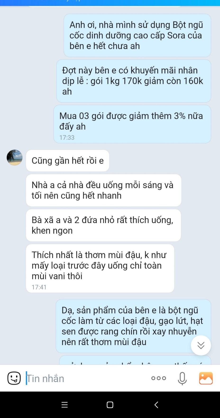 Mua tại TiktokBột Ngũ Cốc Dinh Dưỡng Cao cấp Sora phù hợp với mọi đối tượng, đặc biệt đối với phụ nữ trước và sau sinh, người già, người táo bón, mất ngủ và trẻ em trên 2 tuổi. Đặc biệt chúng tôi sử dụng các loại đậu ta có nguồn gốc hướng đến hữu cơ, không sử dụng sản phẩm biến đối gen (Non-GMO), đảm bảo không thuốc trừ sâu, không phân hóa học. Hãy yêu thương cơ thể của mình, hãy chăm sóc tim mạch, cân bằng đường huyết, chống oxi hóa, giảm cholosterol, cải thiện vóc dáng, lưu thông máu huyết bằng 02 ly ngũ cốc dinh dưỡng cao cấp Sora mỗi ngày nhé ! HÃY ĐỂ SORA CHĂM SÓC BẠN MỖI NGÀY !!! Thông tin chi tiết: Bột ngũ cốc dinh dưỡng cao cấp Sora 500g, 1kg (túi zip) HSD : 12 tháng.
