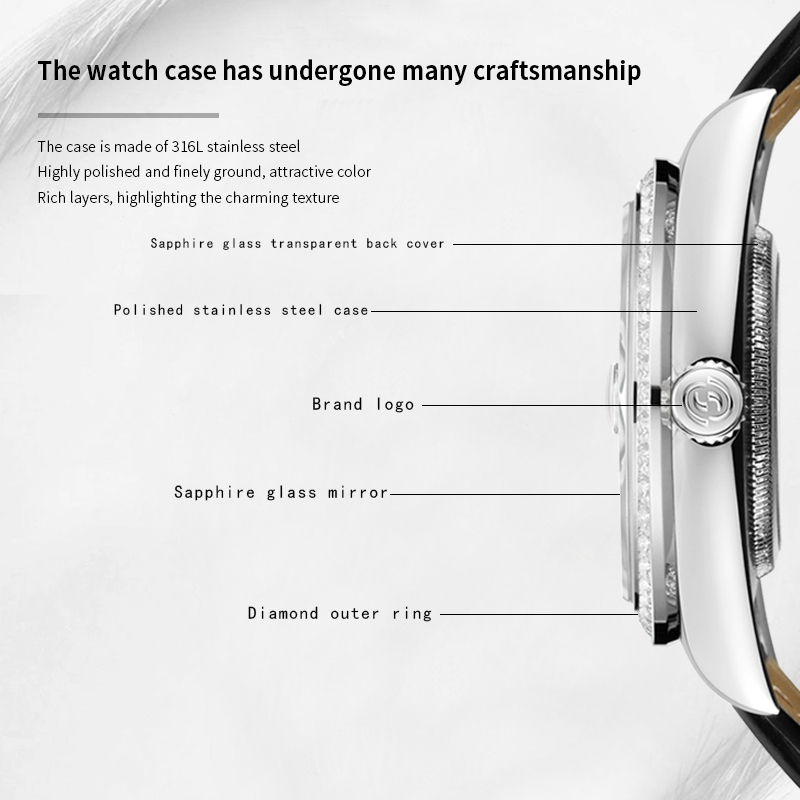 ★Thương hiệu:START★ Đặc điểm:Mặt số nạm kim cương,ngày Khả năng chống thấm nước: 50 mét không thấm nước Loại lõi đồng hồ: Lõi đồng hồ cơ học tự động Đường kính vỏ đồng hồ: 40mm