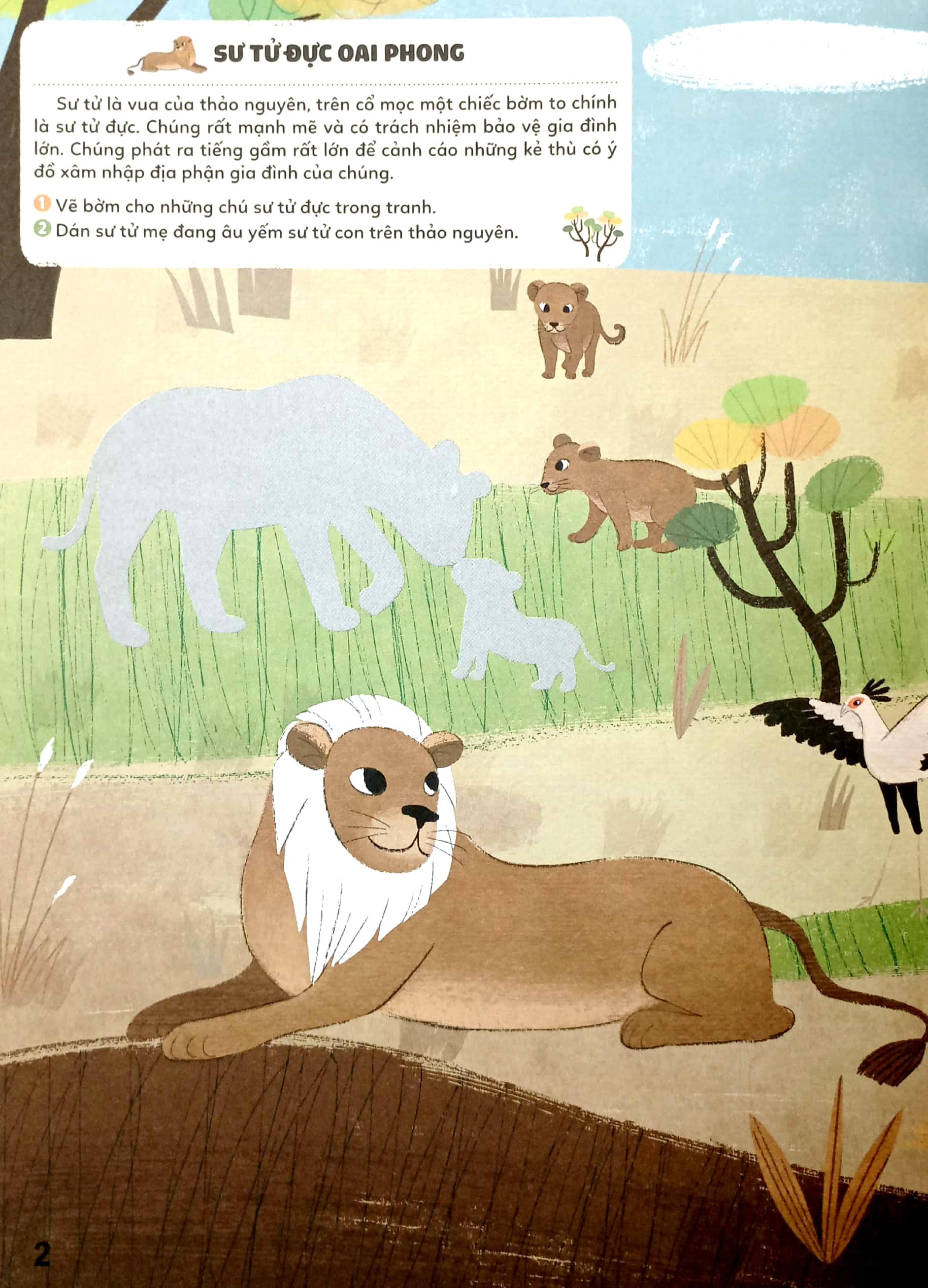 Hình ảnh các loài động vật sinh động và đáng yêu khiến các bé say mê thiên nhiên từ nhỏ. Cuốn sách gồm 300 hình dán cùng 100 bức tô màu giúp các bạn nhỏ vừa học vừa chơi, dễ dàng nhận biết. Từ đó rèn luyện khả năng quan sát, trí tưởng tượng, óc sáng tạo và khả năng thực hành. Với những câu đố vui, cha mẹ có thể thu hoạch kiến thức cùng các con.