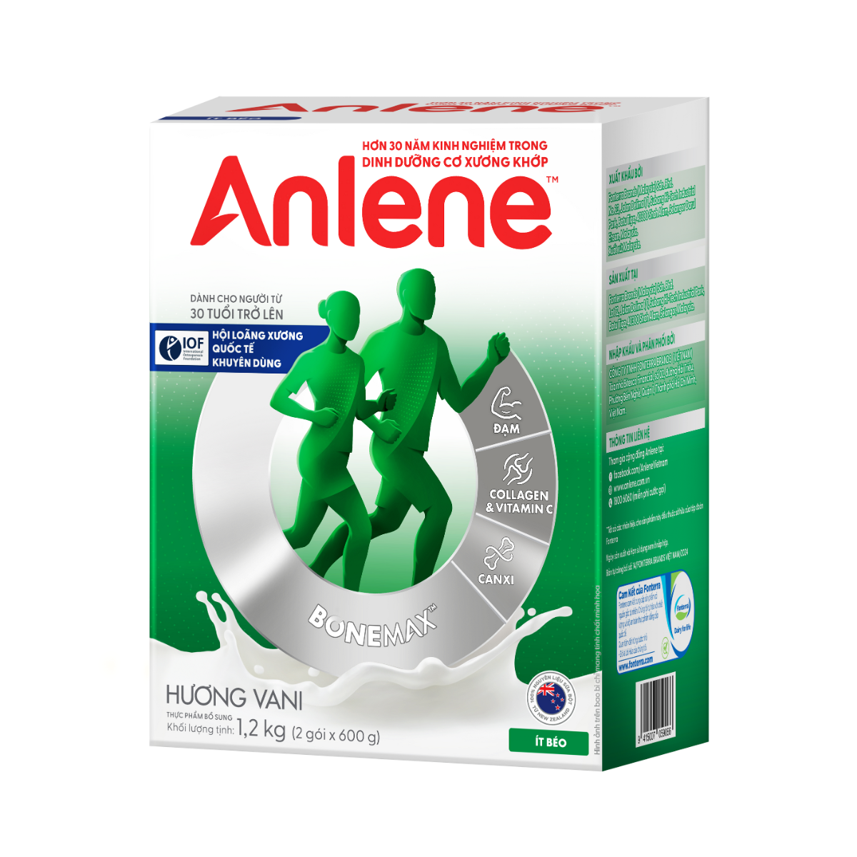 SỮA ANLENE HƯƠNG VANISản phẩm sữa cho người lớn tuổi (từ 30 tuổi trở lên) với HỆ DƯỠNG CHẤT BONEMAX chứa hàm lượng cao: • Đạm • Canxi • Collagen • Các loại Vitamin (B, C, D) • Khoáng chất (Magiê, Kẽm)