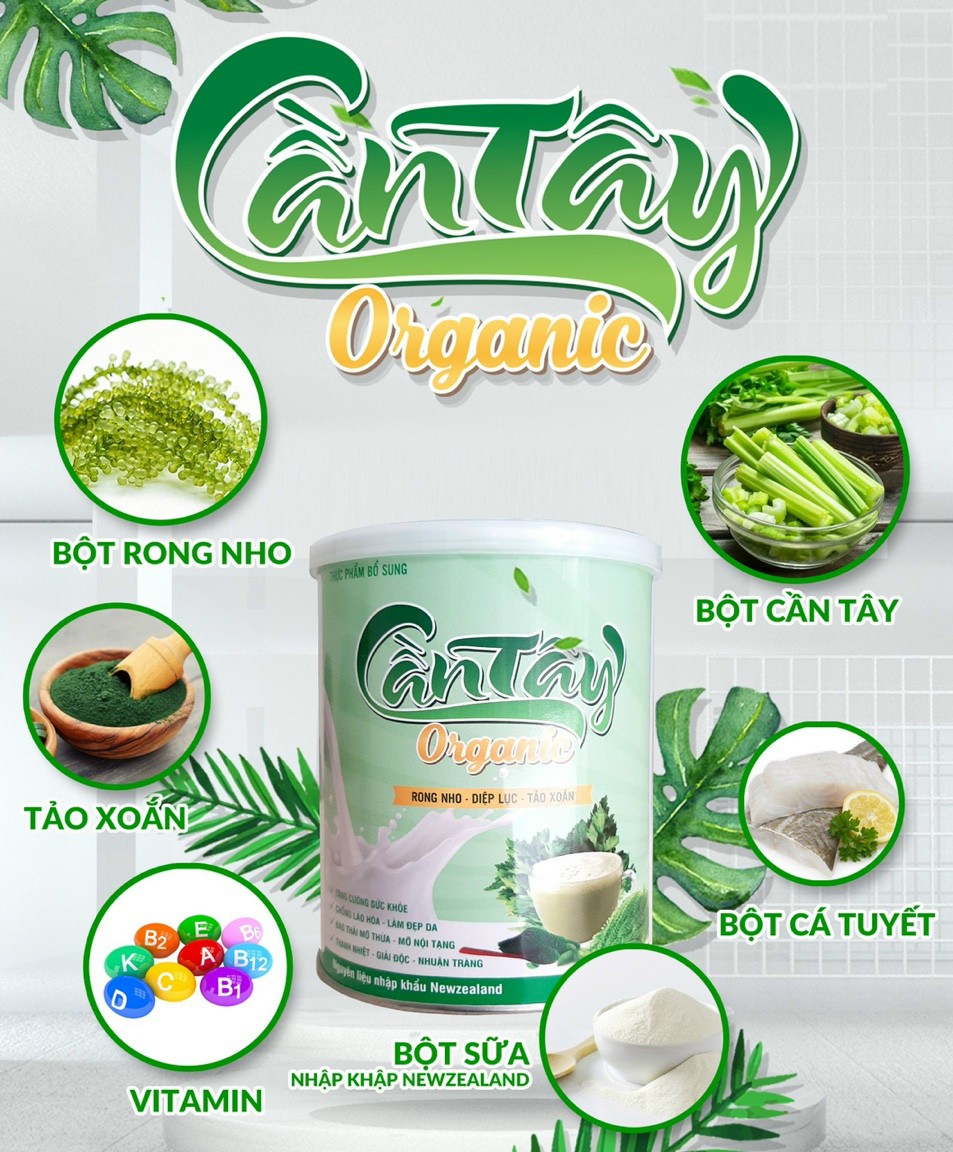 Sữa Bột Cần Tây Rong Nho, Diệp Lục, Tảo Xoắn Organic nguyên chất 100% được sản xuất theo Công Nghệ Nhật Bản sấy lạnh hiện đại nhất hiện nay giữ nguyên được hương vị và chất dinh dưỡng của rau tươi. Nguyên liệu nhập trực tiếp từ New Zealand được trồng theo hướng hữu cơ tốt cho sức khoẻ người tiêu dùng. Sản phẩm hiện đang phân phối trong nước và nước ngoài.