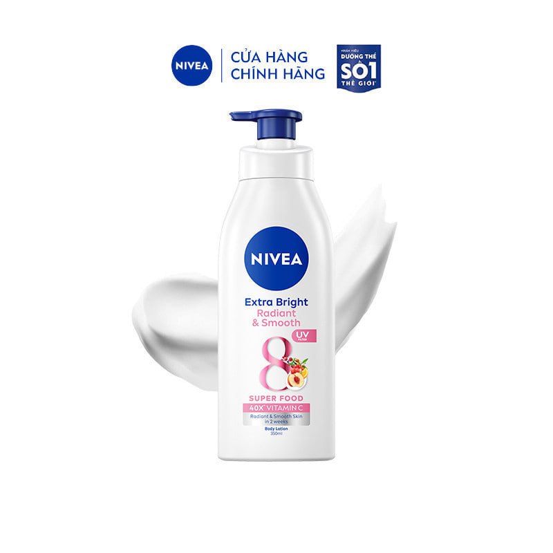 Sữa Dưỡng Thể NIVEA Extra Bright Dưỡng Sáng Da | Mịn Da (350 ml)CÔNG DỤNG- Dưỡng da sáng mịn từ bên trong, màng lọc tia UV giúp bảo vệ da khỏi tác hại của nắng. Cho một làn da mịn màng & cảm nhận...