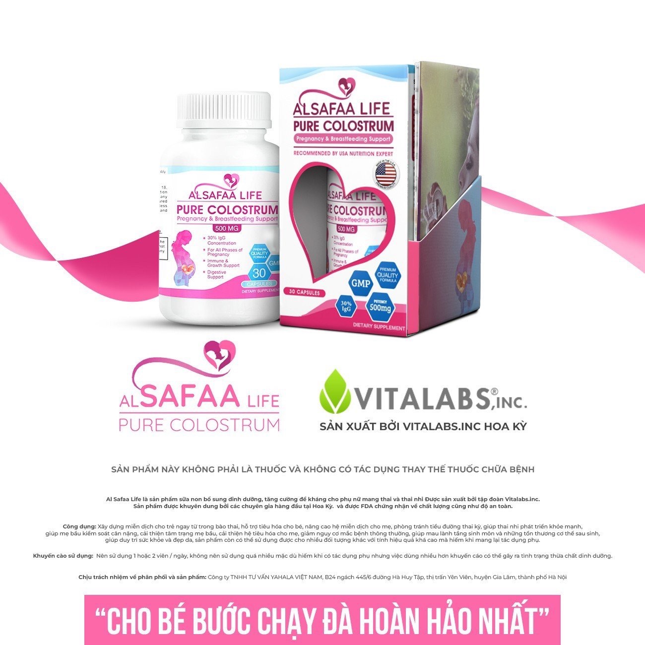 Thực phẩm bảo vệ sức khỏe Sữa non Al Safaa Life với hàm lượng cao các chất dinh dưỡng quan trọng như protein, vitamin, khoáng chất và yếu tố đề kháng. Đặc biệt, sữa non Al Safaa Life có hàm lượng IgG lên đến 30%, giúp tăng cường hệ miễn dịch và bảo vệ sức khỏe của mẹ bầu và thai nhi, hỗ trợ thai kỳ khỏe mạnh, bổ sung các chất dinh dưỡng, vitamin thiết yếu cho mẹ và bé trong suốt thai kỳ.