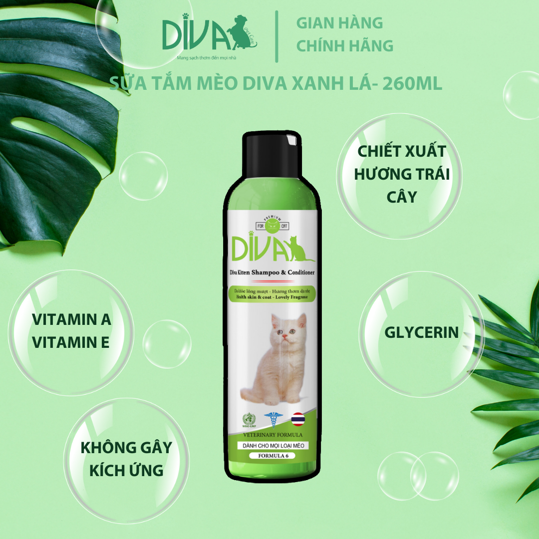 ✨SỮA TẮM CHO MÈO DIVA XANH LÁ 260ML (DIVA FORMULA 6)