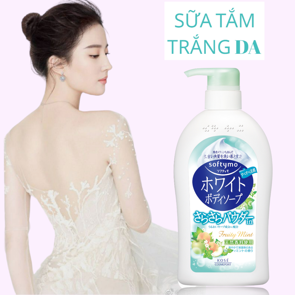 Mua tại TiktokSữa Tắm Dưỡng Trắng Mịn Da Chiết Xuất Collagen Kose Softymo Body Soap Thương hiệu: Kose Mã vạch: 4971710311556 Xuất xứ: Nhật Bản Dung tích: 600mL 1/ Công dụng Sữa Tắm Kose Softymo 600mL: Sữa tắm giúp làm sạch bụi bẩn và bã nhờn trên da toàn thân, cung cấp dưỡng chất và độ ẩm cho da, giúp dưỡng trắng da, giúp mang lại làn da sạch sẽ, mềm mại, mịn màng. 2/ Hướng dẫn sử dụng: