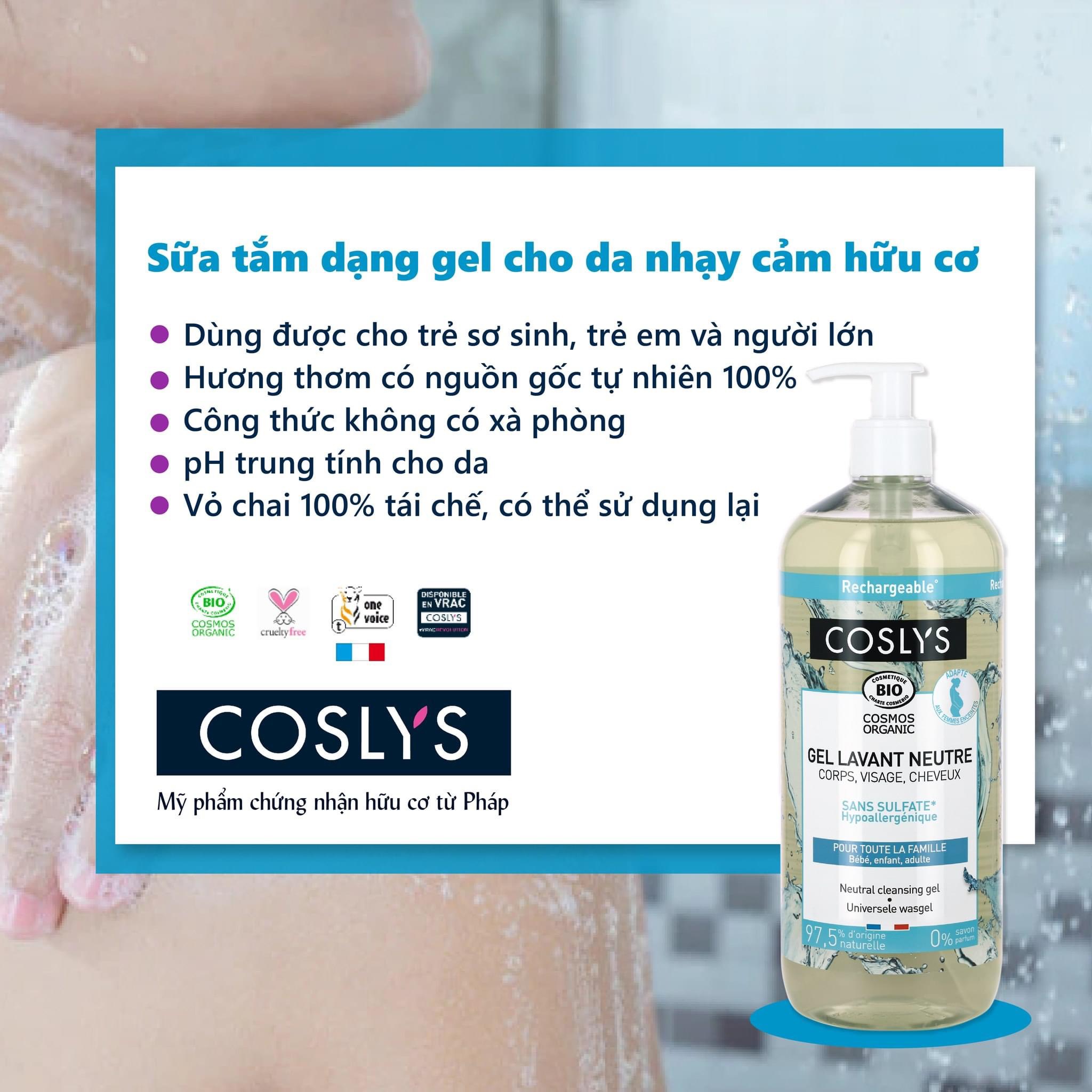 ✨Sữa tắm hữu cơ dạng Gel dành cho da mỏng nhạy cảm 1L - Coslys