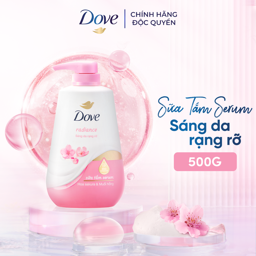 BAO BÌ THAY ĐỔI THEO TỪNG ĐỢT NHẬP HÀNG Ưu điểm nổi bật Với chiết xuất hoa anh đào và muối hồng, sữa tắm dưỡng thể Dove Sakura Blossoms nhẹ nhàng làm sạch, cho da