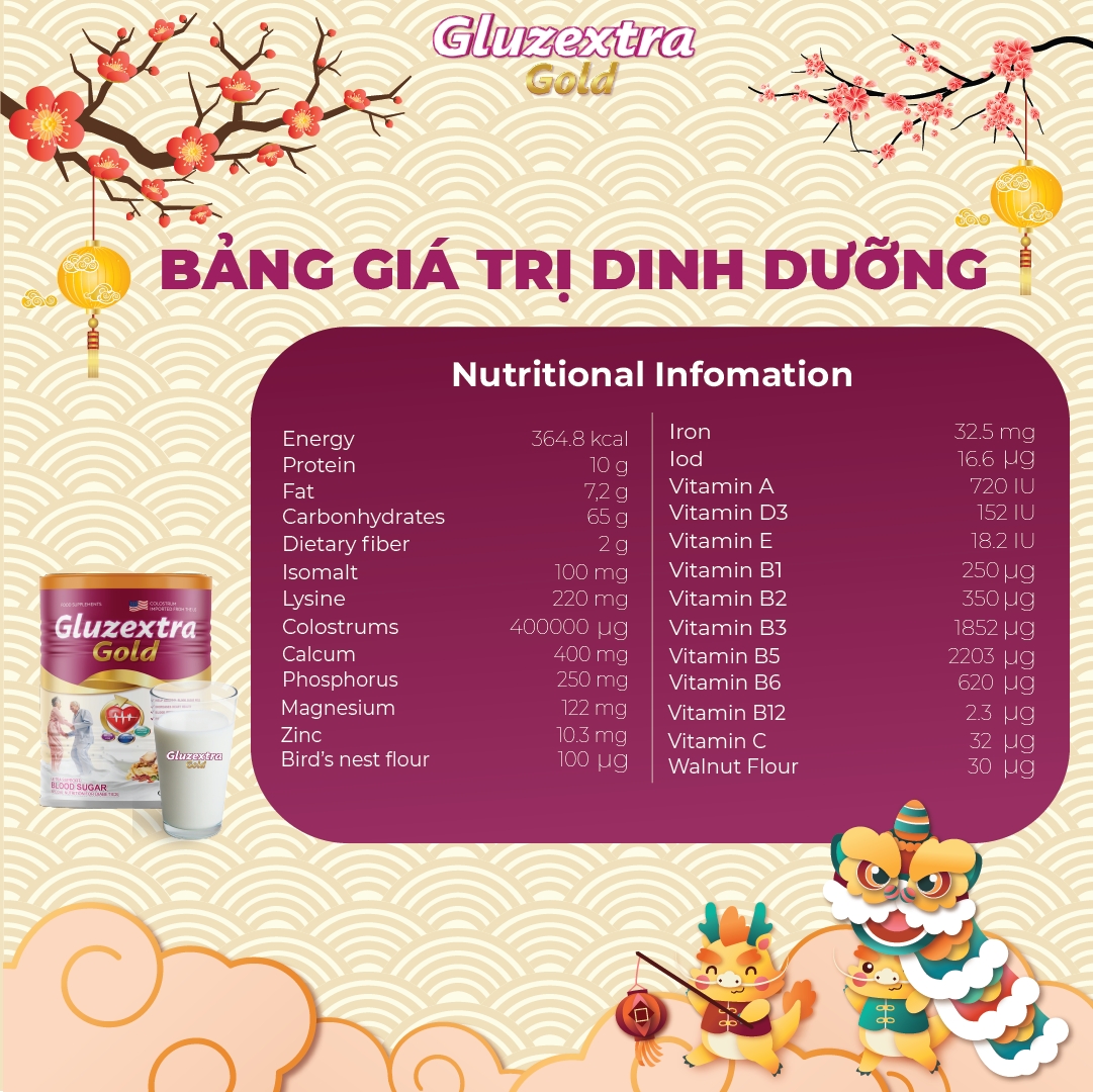 - Thành phần nguyên liệu của sữa tiểu đường GLUZEXTRA GOLD: