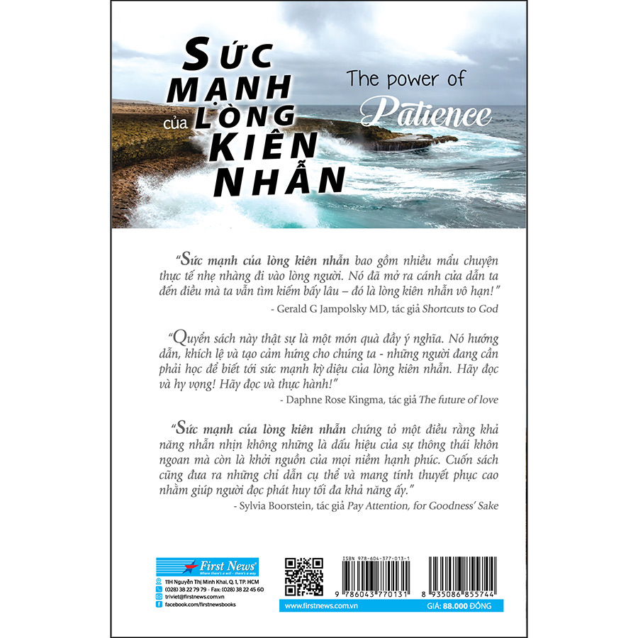 - Arnold H. Glasgow. Dường như thế giới chúng ta đang sống ngày càng bị cuốn vào vòng xoáy không ngừng của sự bận bịu hối hả, bị ảnh hưởng bởi bao hệ lụy của đời sống công nghiệp hiện đại. Ở nhà và công sở thì công việc chất chồng, ra đường thì kẹt xe và khói bụi, điện thoại kêu inh ỏi ngay cả trong giấc ngủ… Tất cả những điều này có vẻ đã trở thành một phần không thể chối bỏ của cuộc sống ngày nay. Hơn lúc nào hết, con người cảm thấy mình cần một trạng thái bình yên, một cảm nhận hạnh phúc - một hạnh phúc không mâu thuẫn với sự thành đạt đòi hỏi phải luôn nỗ lực không ngừng trong cuộc sống của chúng ta. Sức mạnh Lòng kiên nhẫn của M. J. Ryan sẽ mang đến giải pháp cho những vấn đề trên. Là tác giả của những cuốn sách nổi tiếng như: The Happiness Makeover (Hạnh phúc không khó tìm), Random Acts of Kindness (Cách hành xử hào hiệp và vị tha) và Attitude of Gratitude (Thái độ biết ơn), Ryan nhận thấy rằng những đức tính cao đẹp muôn thuở luôn có sức mạnh đem lại ánh sáng và tình yêu cho cuộc đời chúng ta. Trong cuốn sách này, Ryan sẽ tiết lộ cho chúng ta thấy bằng cách nào mà lòng kiên nhẫn có thể giúp ta làm chậm lại nhịp sống và ngày càng có những cảm nhận tốt đẹp hơn về chính mình. Sự kiên nhẫn sẽ giúp chúng ta phát huy tối đa năng lực bản thân, cho ta khả năng chiến thắng những cơn nóng giận khiến ta phải hối tiếc sau này, giúp ta có sức mạnh theo đuổi và đạt được những điều lớn lao tưởng chừng vượt ngoài tầm với. Ryan biết rất rõ nếu chỉ cố gắng kiên nhẫn thôi thì chưa đủ. Tác giả còn chia sẻ với chúng ta một thái độ cần có để giúp ta luôn có thể duy trì và củng cố lòng kiên nhẫn. Nếu mong đợi bản thân tiến dần đến sự hoàn thiện và luôn luôn học hỏi, nếu nhận thấy giá trị của việc kiên trì gỡ rối một vấn đề thay vì chỉ đơn giản né tránh nó, và nếu ý thức rằng còn có nhiều cách giải quyết khác nhau cho cùng một sự việc thì lòng kiên nhẫn của bạn sẽ tăng dần theo thời gian cùng với hạnh phúc thật sự trong hiện tại. Và cao hơn hết là cảm giác mãn nguyện, hài lòng với chính mình. Ryan cũng chia sẻ với chúng ta những cách rèn luyện hiệu quả của những người đã vận dụng thành công sức mạnh của lòng kiên nhẫn. Bà kể về bí quyết giữ bình tĩnh và kiên nhẫn của những người phi công lái thử máy bay một cách hóm hỉnh như sau: Khi đèn báo nguy chớp sáng liên hồi, họ không hoảng hốt mà chỉ tự hỏi: “Cái cục sắt này vẫn còn bay được chứ?” Bạn cũng sẽ biết cách thức có thể khiến các vận động viên làm tăng tối đa sức lực trong khi thi đấu mà chỉ phải sử dụng 90% năng lực của mình. Và bản thân tác giả M. J. Ryan cũng đưa ra một kỹ thuật đơn giản nhưng hiệu quả vô cùng: Hãy tự nhủ rằng mình luôn có đủ thời gian! Cùng với những câu trích dẫn đầy khích lệ và những câu chuyện đời của những người nổi tiếng, cuốn sách Sức mạnh Lòng kiên nhẫn thật sự là một món quà tinh thần quý báu và đầy kinh nghiệm thực tiễn dành cho chúng ta.