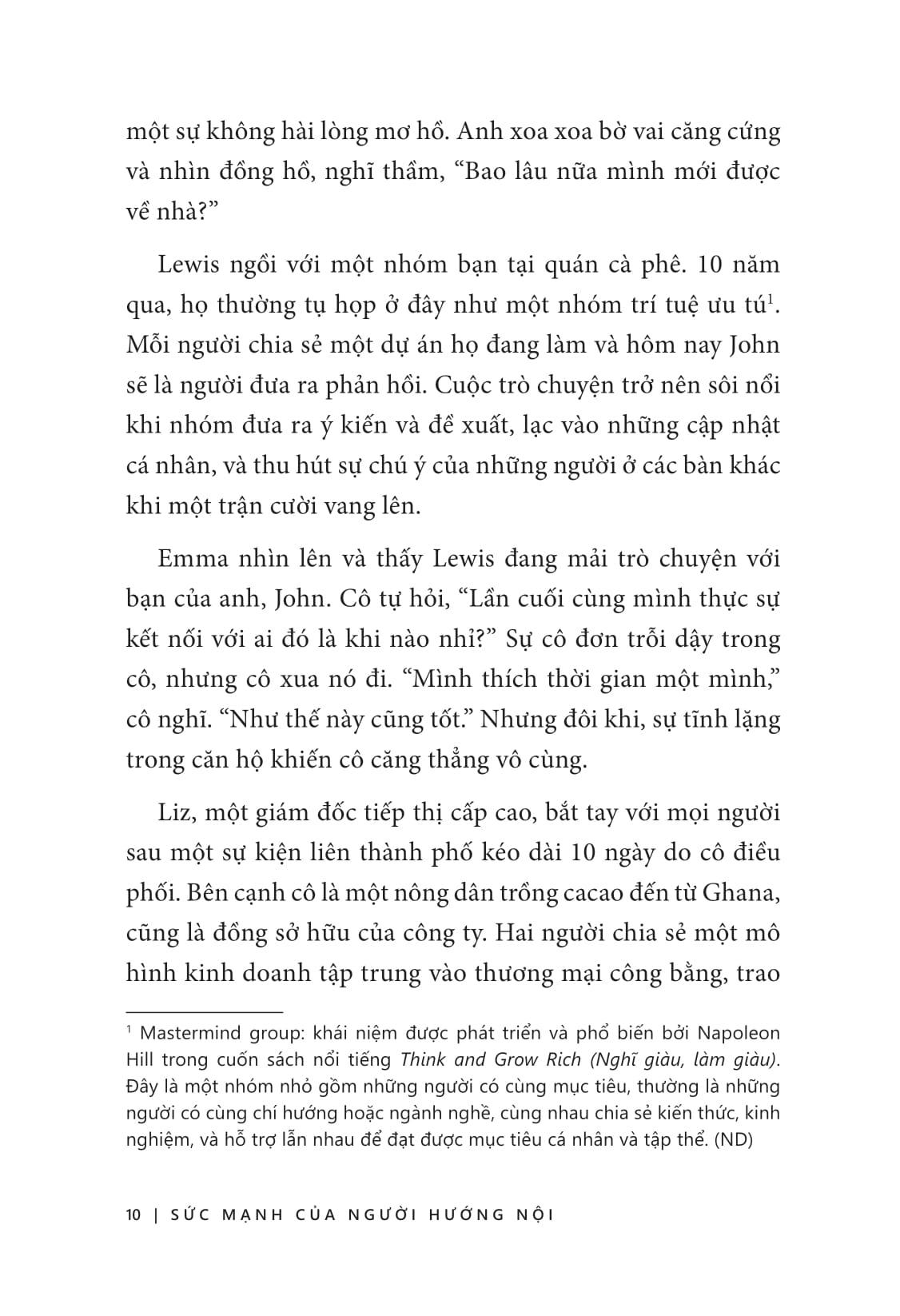 Những nghiên cứu cho thấy, những đặc điểm thường được xem là khó khăn của người hướng nội hoàn toàn có thể trở thành ưu thế tuyệt vời nhất của họ. Người hướng nội không cần phải cố trở nên hướng ngoại để có thể thành đạt, làm lãnh đạo hay tạo ra sự khác biệt. Thay vào đó, họ chỉ cần hiểu đầy đủ chính bản thân m.ình để tránh khỏi bẫy tâm lý bất an, lo sợ và dũng cảm cống hiến những phẩm chất độc đáo của m.ình cho thế giới.
