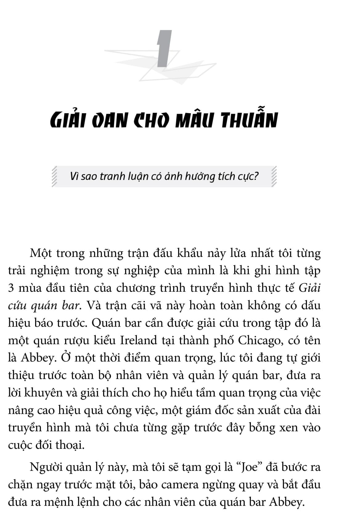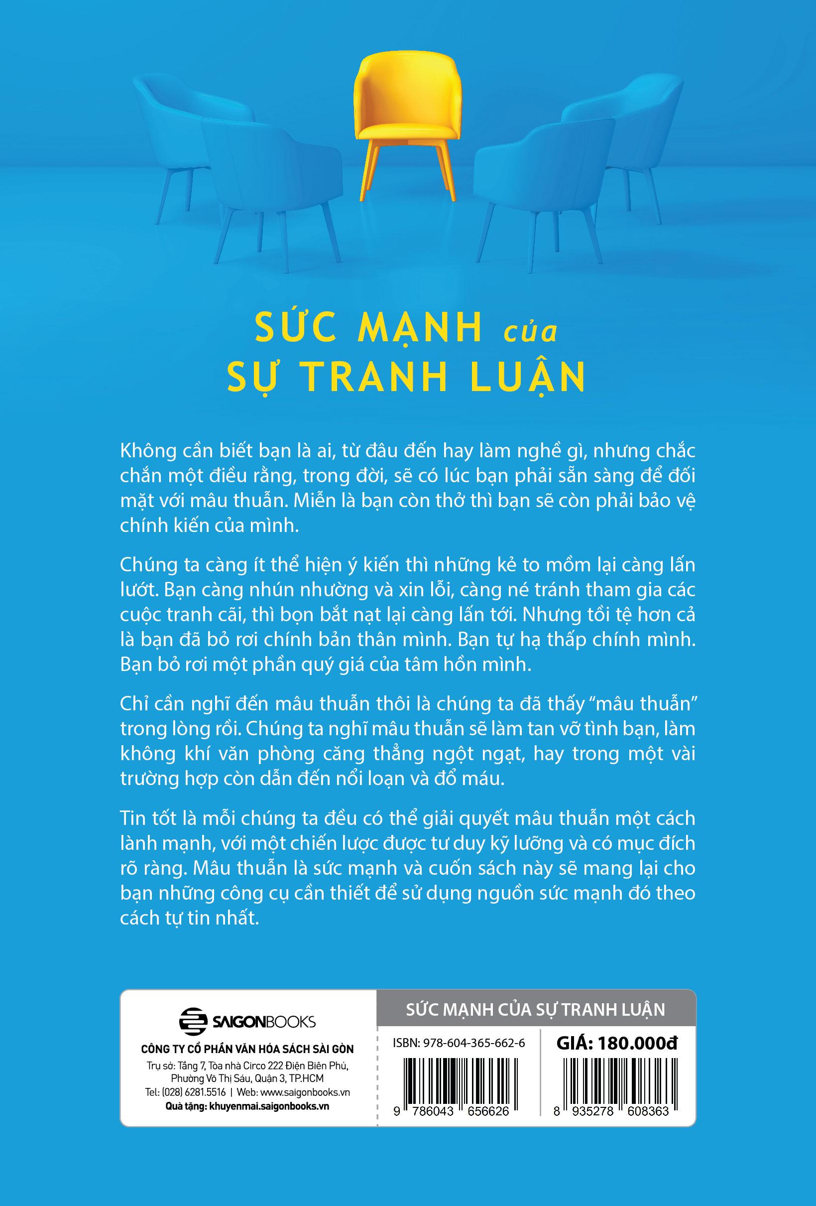 “Sức mạnh của sự tranh luận” sẽ hướng dẫn bạn phương pháp này thông qua nhiều ví dụ thực tiễn trong cuộc đời và sự nghiệp của chính tác giả cũng như cuộc đời của những người khác, những người đủ can đảm để đương đầu với mâu thuẫn và đã cải thiện cuộc sống, đạt được thành công.