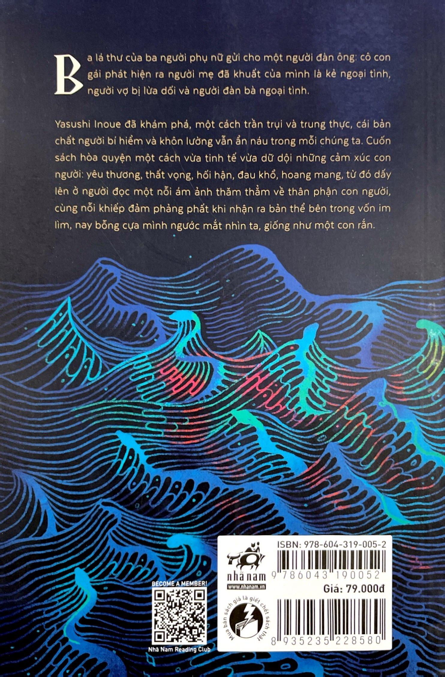 Ba lá thư của ba người phụ nữ gửi cho một người đàn ông: cô con gái phát hiện ra người mẹ đã khuất của mình là kẻ ngoại tình, người vợ bị lừa dối, cùng người đàn bà ngoại tình. Yasushi Inoue đã khám phá, một cách trần trụi và trung thực, cái bản chất người bí hiểm và khôn lường vẫn ẩn náu trong mỗi chúng ta. Cuốn sách hòa quyện một cách vừa tinh tế vừa dữ dội của những cảm xúc con người: yêu thương, thất vọng, hối hận, đau khổ, hoang mang, từ đó dấy lên ở người đọc một nỗi ám ảnh thăm thẳm của cái thân phận con người, cùng nỗi khiếp đảm phảng phất khi nhận ra bản thể bên trong vốn im lìm, nay bỗng cựa mình ngước mắt nhìn ta, giống như một con rắn.
