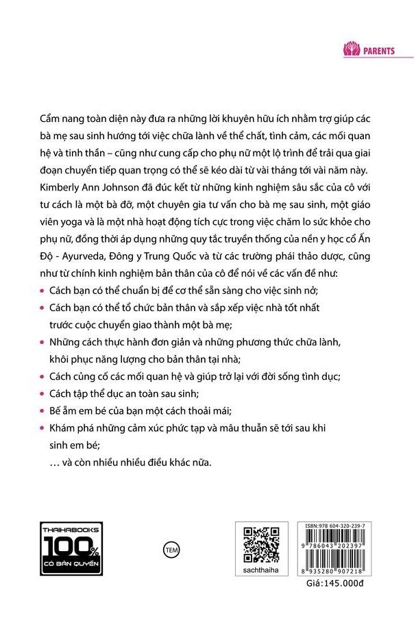 Chúng ta tất cả đều sai lầm khi chỉ chú tâm vào việc mọi phụ nữ đều nên chuẩn bị một kế hoạch đi sinh chu đáo. Cá nhân tôi tin rằng bạn cũng cần chuẩn bị cả kế hoạch sau sinh cho những ngày đầu tiên và quý giá của hành trình làm mẹ nữa. Với cuốn sách này, Kimberly đã tạo ra một cuốn cẩm nang giúp bạn hồi phục lại cơ thể và nâng tầm chính bạn trong vai trò mới cho suốt hành trình về sau của bạn.