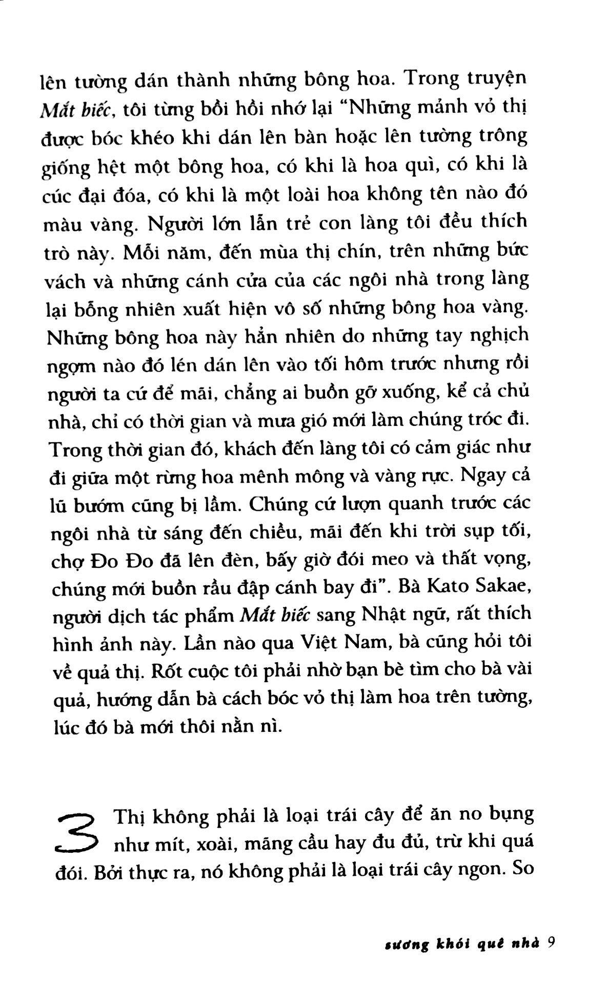Có thể đặt tên nôm na 3 phần theo số thứ tự trong cuốn Tạp văn mới của Nguyễn Nhật Ánh “Sương khói quê nhà”: Tình quê, Người thân, và Những chuyến đi.