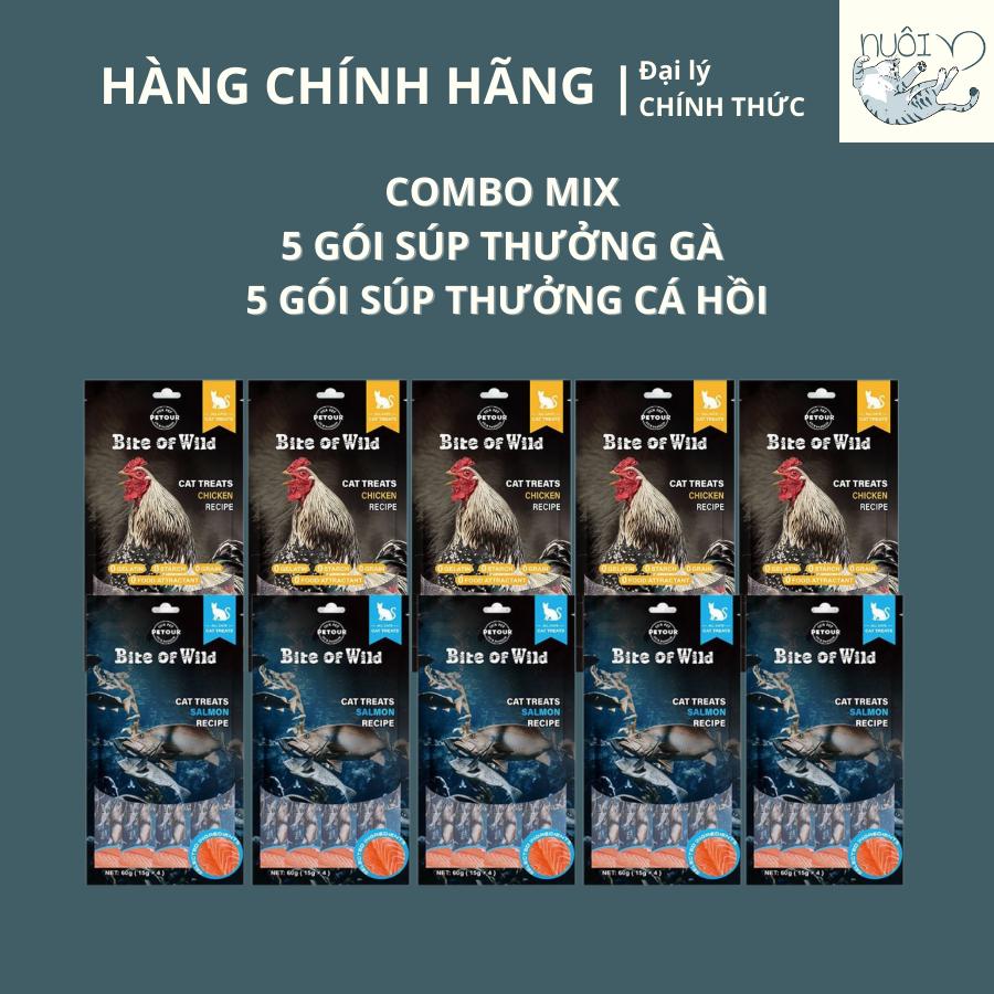 ✨Súp thưởng cho mèo, chó của BITE OF WILD - Vị gà, vị cá hồi - Gói 60g (15g*4 tips)