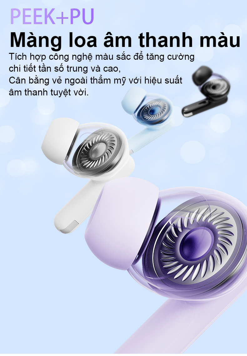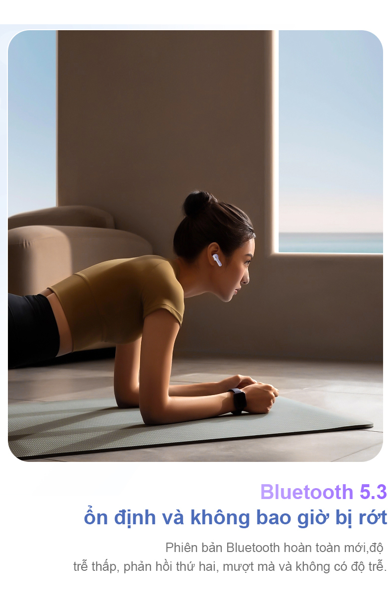 - Chip Bluetooth 5.3, tốc độ truyền nhanh hơn, khoảng cách truyền dài hơn, ổn định và chống nhiễu.