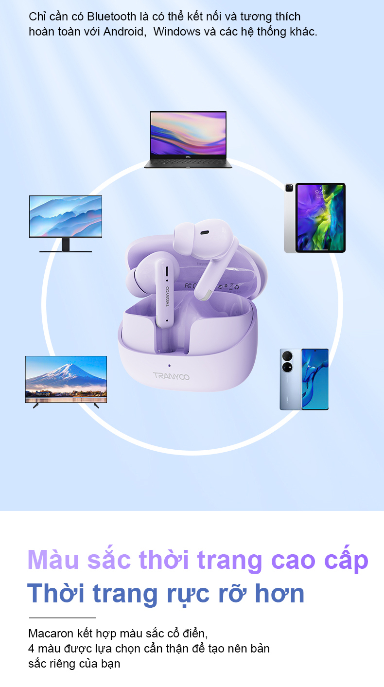✨Tai nghe Bluetooth 5.3 TRANYOO T-M26, khử tiếng ồn thông minh, thiết kế đẹp, sang trọng, pin trâu - Hàng chính hãng