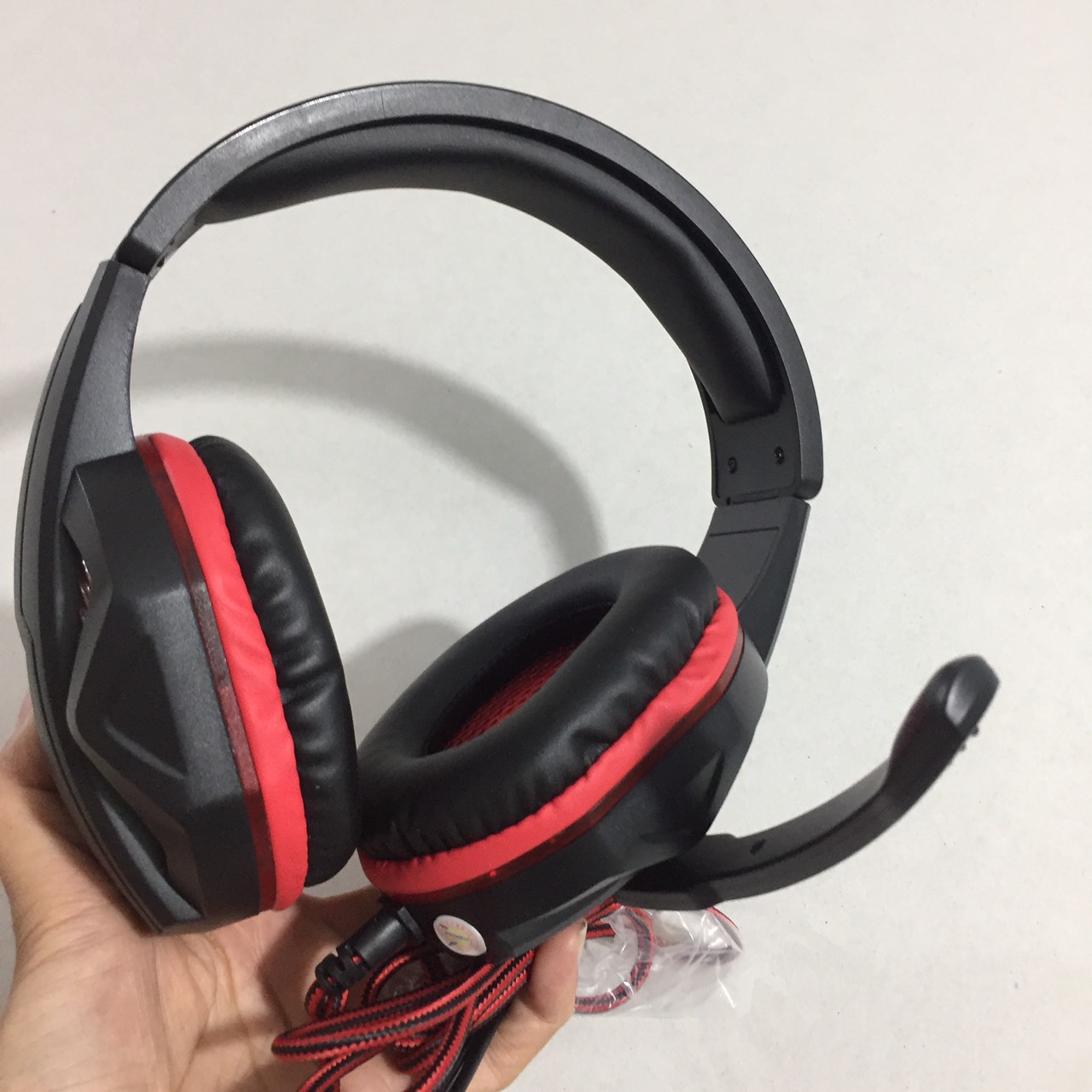 Tai nghe chuyên game có Mic, có đèn Led, dùng cho Pc/Laptop . Với thiết kế hoành tráng, gọng bằng nhựa dẻo có thể bẻ cong 1 cách thoải mái, cùng với chụp tai to,