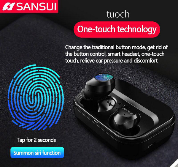 ✨Tai nghe không dây cảm ứng Bluetooth 5.0 Cao cấp Sansui có Dock tự sạc (Âm thanh HiFi tuyệt hảo) - Hàng nhập khẩu