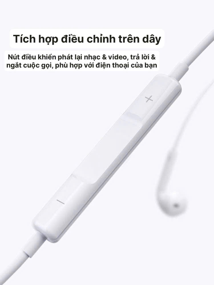 TÍNH NĂNG NỔI BẬT - Có remote nghe cuộc gọi hoặc tạm dừng khi đang nghe nhạc - Chân kết nối 3.5mm - Tính năng khử tiếng ồn - Chứng chỉ an toàn CE FCC