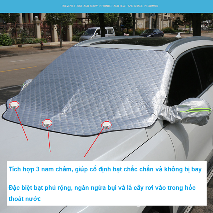 - Ở phía trước, các cửa và sau xe ô tô đều sử dụng kính để đảm bảo tầm nhìn, mang đến ánh sáng và sự thông thoáng. Tuy nhiên, kính lại là vật liệu có khả năng hấp thụ nhiệt lượng và bức xạ mặt trời rất lớn, nhất là kính lái. Bởi kính lái có diện tích rộng, độ nghiêng lớn nên sẽ càng hấp thụ nhiệt và bức xạ. Đây chính là nguyên nhân khiến nhiệt độ xe tăng cao, các chi tiết nội thất bằng nhựa – da nhanh lão hoá khi xe đậu dưới trời nắng.- Để hạn chế tác hại từ nắng nóng, nhiều cách chống nắng ô tô ra đời. Trong đó hiệu quả nhất phải kể đến bạt chống nắng ô tô và tấm che nắng kính trước ô tô. Tuy nhiên, bạt phủ sẽ thích hợp để sử dụng khi thời gian đậu xe lâu như cả ngày hoặc nhiều ngày. Bởi bạt phủ khá to, quá trình phủ bạt/thu dọn bát khá mất thời gian. Trong khi tấm chắn nắng kính lái nhỏ gọn hơn, phủ nhanh, gấp nhanh, dù mức độ chống nắng nóng không toàn diện như bạt phủ nhưng cũng rất hiệu quả.- Sở dĩ tấm che nắng kính lái oto chống nắng nóng hiệu quả là do thường có cấu tạo 4 lớp làm từ vật liệu chống nắng đặc chế:- Lớp vải nhôm PE phản quang chống thấm: Đóng vai trò là lớp màng chắn đầu tiên để phản xạ lại tia nắng mặt trời chiếu tới và ngăn chặn quá trình hấp thụ nhiệt lượng, bức xạ vào bên trong xe.- Lớp bông Spunlace chống thấm nước- Lớp bông cách nhiệt: Nhiệm vụ chủ yếu là cách nhiệt, tản nhiệt, đồng thời làm tiêu giảm nguồn nhiệt lượng, loại bỏ các bức xạ của mặt trời.- Lớp vải lót bảo vệ kính: Có vai trò bảo vệ cho bề mặt kính lái, chống tình trạng trầy xước mặt kính ngay cả khi ma sát cao- Đặc biệt bạt phủ tích hợp 3 thanh nam châm, giữ cho bạt cố định không bị gió thổi bay. Đồng thời giữ sạch hốc để cần gạt mưa.- Tấm chắn nắng kính lái ô tô được thiết kế 2 bên đầu tấm phủ có 2 tai để kẹp trong cánh của chống trộm cắp. Nhỏ gọn, dễ gấp và dễ cất- Tấm chắn nắng kính trước có thể sử dụng cho các dòng xe 4 chỗ, 7 chỗ, xe bán tải và xe tải nhỏ - Tấm chắn nắng kính lái ô tô được thiết kế thêm 2 tai chụp bảo vệ gương chiếu hậu, đặc biệt tích hợp dải phản quang, giúp đỗ xe thêm an toàn- Tấm chắn nắng kính lái ô tô còn có thể sử dụng cho xe xe mô tô phân phối lớn, che yên xe xe máy, xe tay ga,đồng thời có thể che luôn kính chắn gió sau xe ô tô- Kích thước: 193*126cm- Trọng lượng: 0.4kg