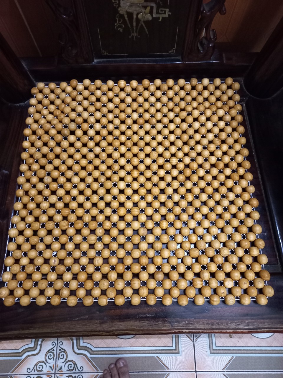 Lót Ghế Bách Xanh Hạt 1.8cm - Móc Viền Tay Thủ Công Lót Ghế Hạt Gỗ