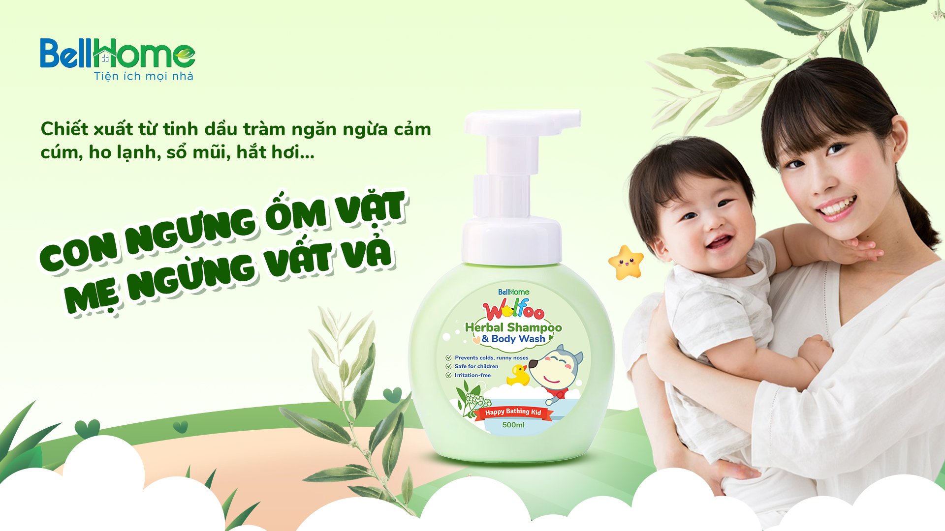Tắm gội Thảo dược Wolfoo Baby Bell Home - Tốt cho bé, nhàn cho mẹ