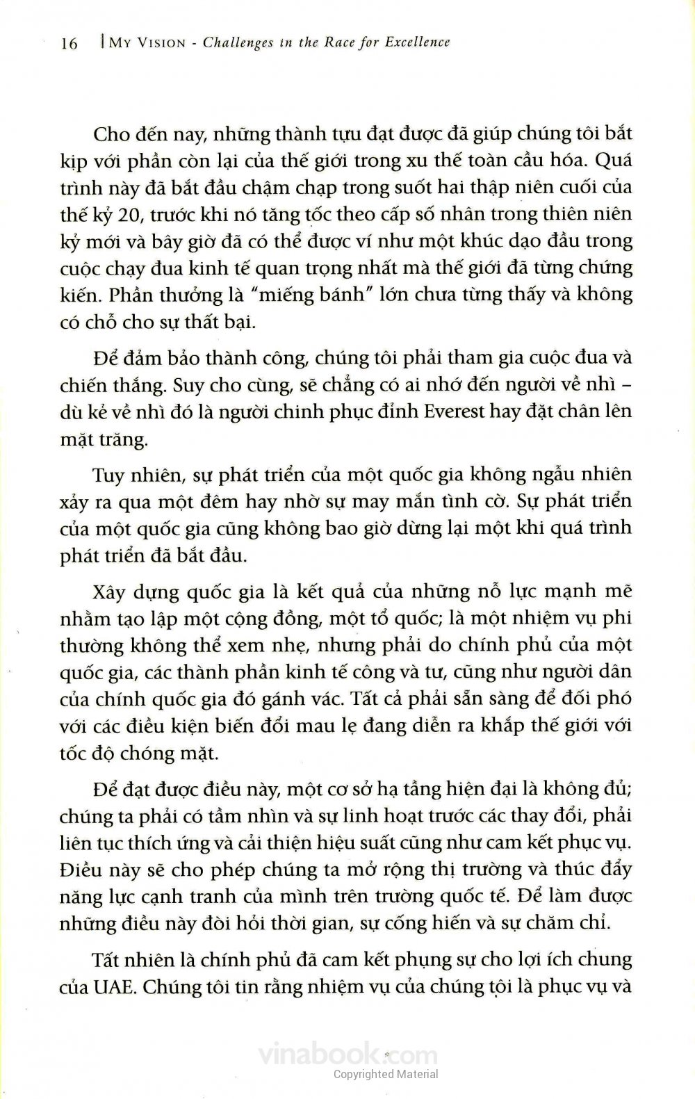 Cuốn sách Tầm Nhìn Thay Đổi Quốc Gia (được biên dịch từ My Vision) của tác giả, đồng thời cũng là Quốc vương Dubai - Mohammed bin Rashid Al Maktoum. Cuốn sách là một cái nhìn toàn diện về Dubai nói riêng và về Ả Rập nói chung, sẽ là một kinh nghiệm, một tham chiếu quý báu cho nhiều quốc gia, trong đó có Việt Nam.
