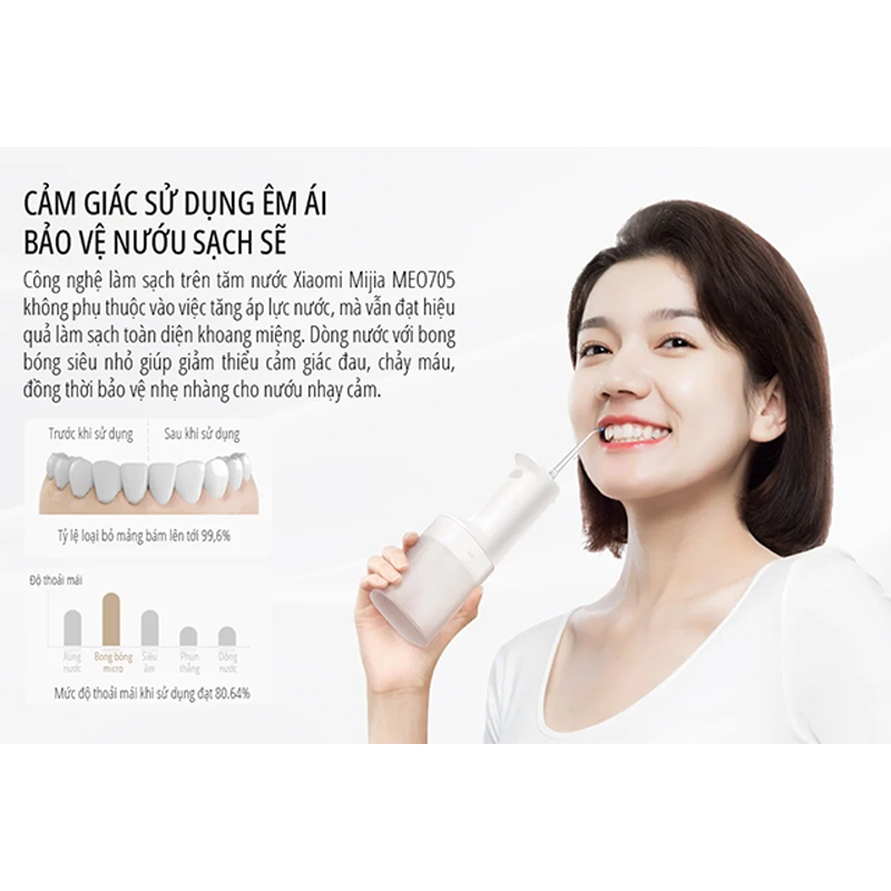 Bạn đang gặp khó khăn trong việc tìm một chiếc máy tăm nước nha khoa chất lượng để vừa có thể làm sạch hiệu quả vừa bảo vệ nướu tối ưu. Bởi nếu sử dụng tăm nước áp lực nước cao và va đập mạnh thì dễ gây chảy máu còn nếu tăm nướcáp lực nước nhỏ, va đập yếu sẽ không làm sạch hiệu quả. Máy tăm nước Xiaomi Mijia MEO705 với 3 chế độ phun tùy chỉnh, công nghệ phun bong bóng micron, 2 vòi chuyên biệt, đầu xịt siêu nhỏ đi kèm pin 90 ngày,... Chắc chắn sẽ là lựa chọn tuyệt vời dành cho người niềng răng, với khả năng loại bỏ gần như 99% mảng bám, giúp làm sạch khoang miệng một cách toàn diện nhất.