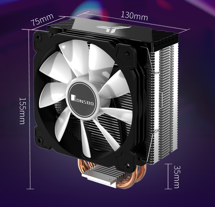 THÔNG SỐ KỸ THUẬT Hãng sản xuất: Jonsbo AMD AM2/AM2+/AM3/AM3+/AM4/FM1/FM2/FM2+ Kích thước bộ tản nhiệt: 155mm x 75mm x 130mm Kích thước quạt: 120mm x 120mm x 25mm Số lượng ống đồng dẫn nhiệt: 4
