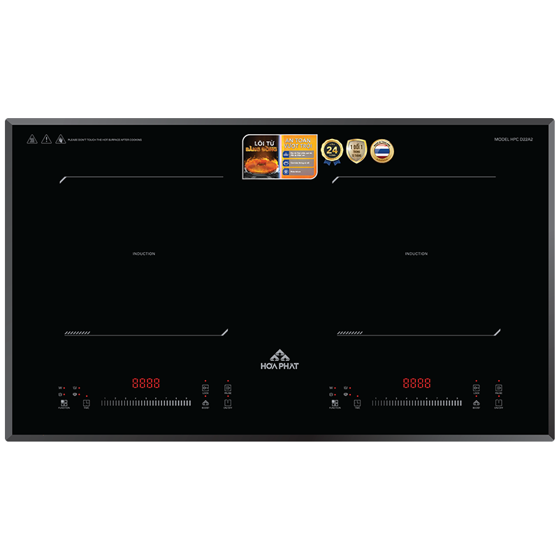 - Loại bếp: Bếp từ đôi - phù hợp với các loại nồi chảo có đáy nhiễm từ, đun nấu cực nhanh và an toàn cho người sử dụng, không trực tiếp tỏa ra nhiệt