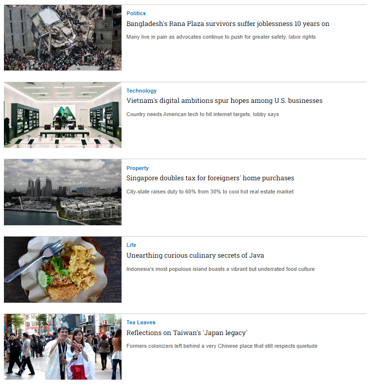 • Là thương hiệu truyền thông lớn và được kiểm duyệt nội dung hằng tuần với dạng thông tin chính thống, được thu thập từ các phóng viên uy tín trên toàn Châu Á, là nguồn trích xuất cho nhiều nhà báo tại Việt Nam.