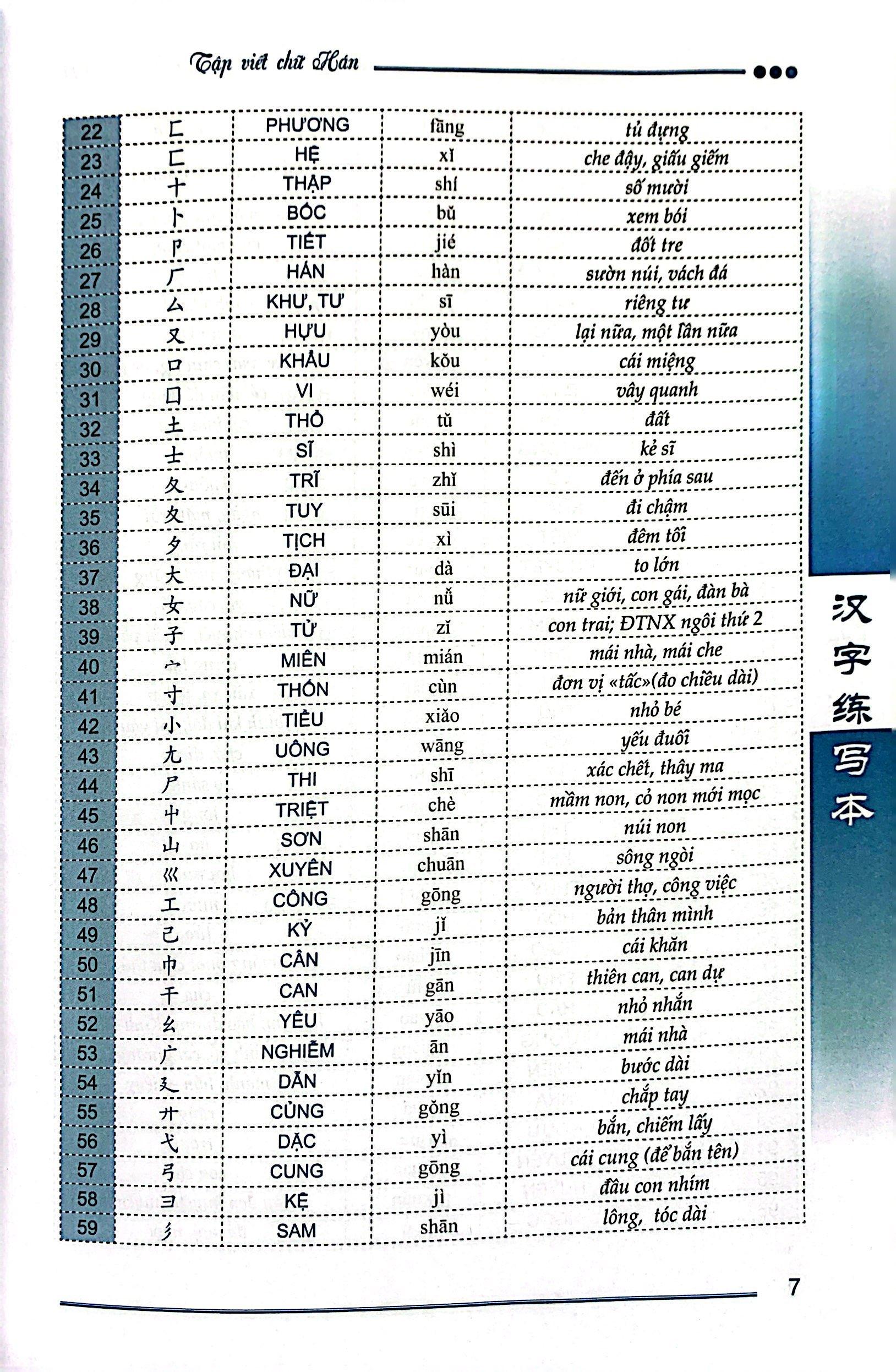 Vở tập viết nét và bộ thủ sẽ giúp bạn rèn nét bút đúng ngay từ ban đầu. Được biên soạn theo các nét và bộ thủ chuẩn của Hán ngữ; dành cho người mới