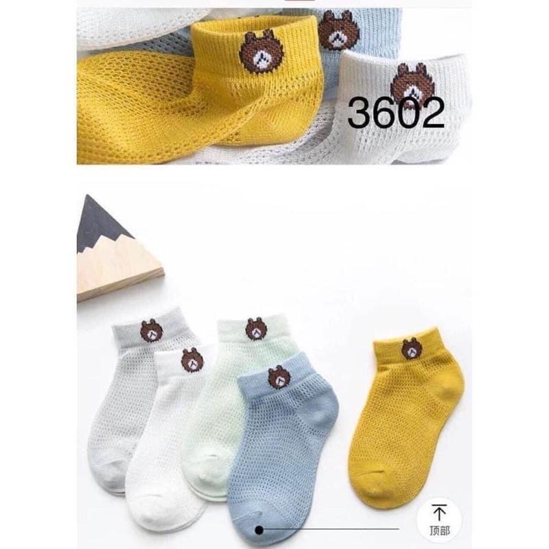Set 5 đôi Vớ Tất Lưới Hình Gấu cổ ngắn cho bé sơ sinh (0-2 tuổi)