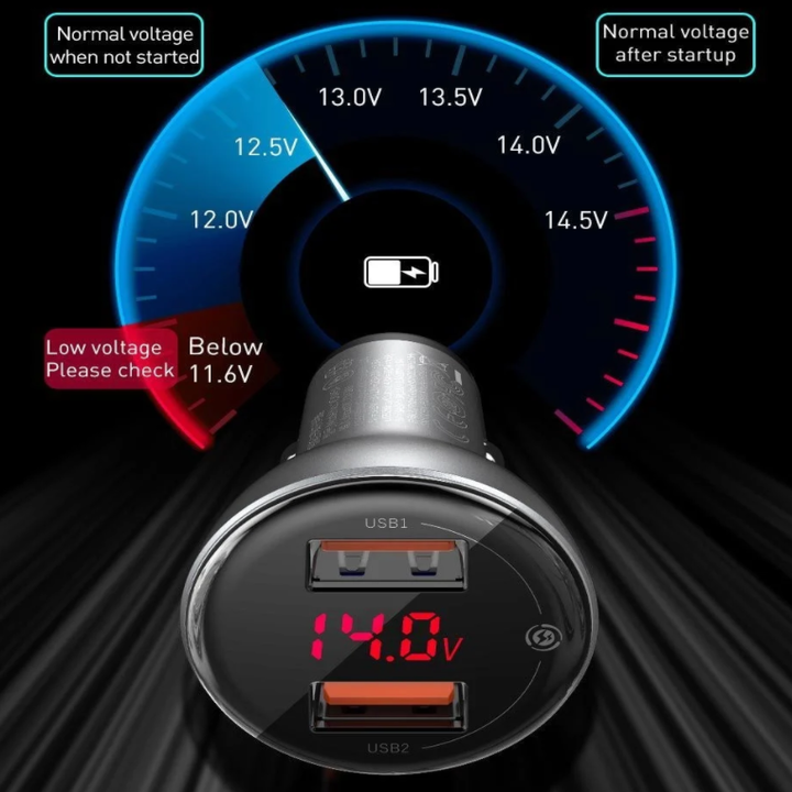 Tẩu Sạc Xe Ô Tô Có Màn Hình Led Hiển Thị - Công dụng: hai cổng sạc USB có thể sạc 2 thiết bị cùng 1 lúc, hỗ trợ tất cả thiết bị đầu