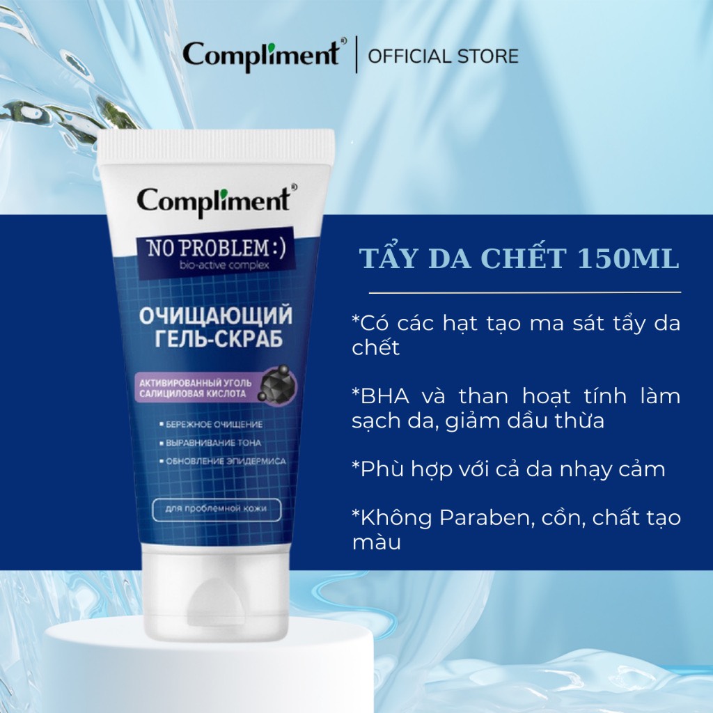 [CHÍNH HÃNG] Tẩy da chết mặt có hạt Compliment No Problem Cleansing Gel Scrub 150ml