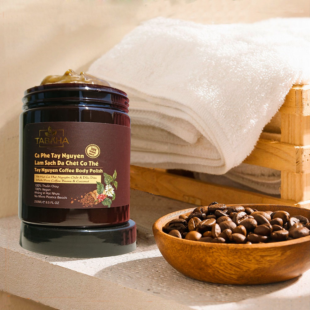 Combo 2 hộp cà phê tây nguyên làm sạch da chết cơ thể 250ml tabaha Thành phần chính: Cà phê Tây Nguyên: Cà phê có tác dụng cao trong việc chống oxi hóa, đặc biệt