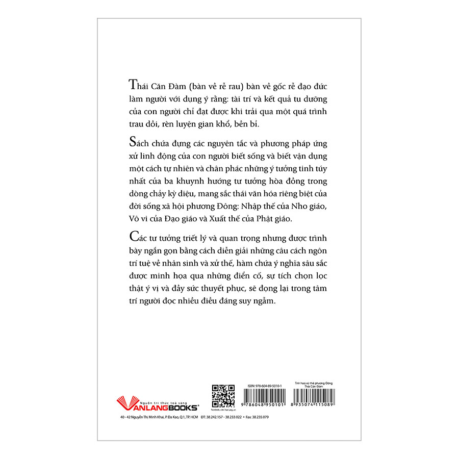 Sách chứa đựng các nguyên tắc và phương pháp ứng xử linh động của con người biết sống và biết vận dụng một cách tự nhiên và chân phác những ý tưởng tinh túy nhất của ba khuynh hướng tư tưởng hòa đồng trong dòng chảy kỳ diệu, mang sắc thái văn hóa riêng biệt của đời sống xã hội phương Đông: Nhập thế của Nho giáo, Vô vi của Đạo giáo và Xuất thế của Phật giáo.