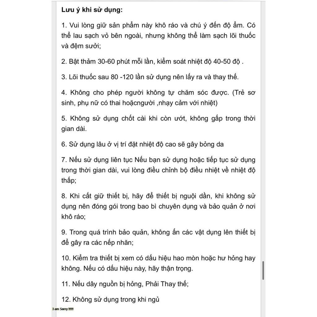 LƯU Ý: SẢN PHẨM KHÔNG KÈM HỘP QUÀ Thông tin sản phẩm Model sản phẩm: M28 Dung lượng pin: 2500mAh Tên sản phẩm: Đai cung điện ấm áp Nhiệt độ làm nóng: 35°~65° Đầu vào: