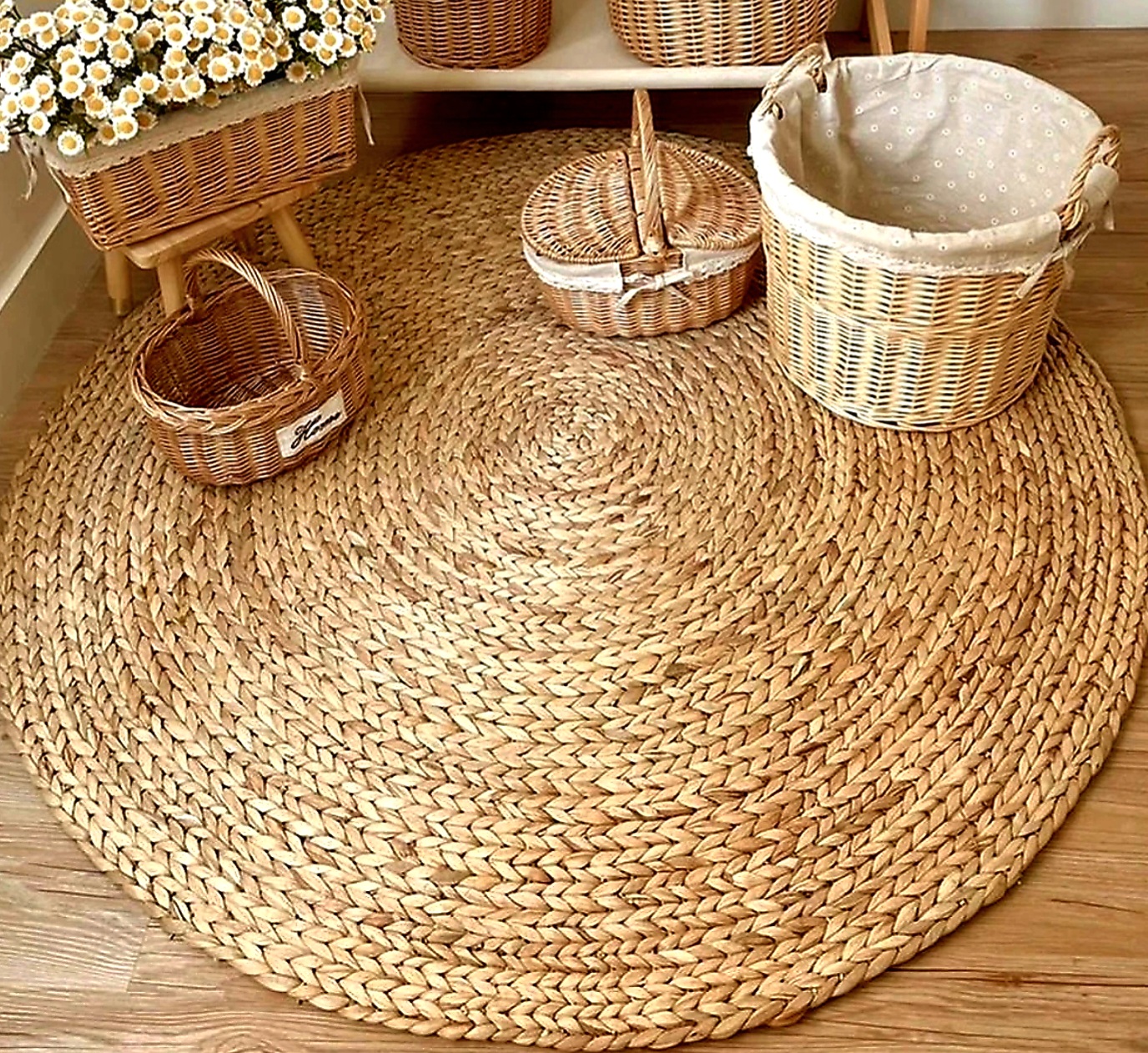 ❁ Thảm trải sàn Cói & Lục bình tròn cao cấp xuất khẩu kích thước tùy chỉnh 60/80/100/120/150/180cm | ongtre (Vietnam). • Sản phẩm được ongtre đặt hàng trực tiếp từ làng nghề phục vụ