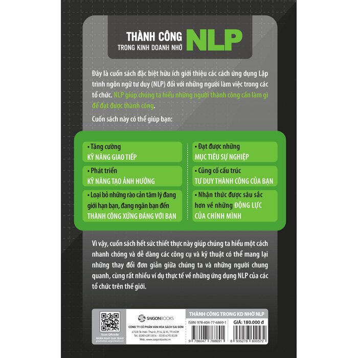 Đây là cuốn sách đặc biệt hữu ích giới thiệu các cách ứng dụng Lập trình ngôn ngữ tư duy (NLP) đối với những người làm việc trong các tổ chức. NLP giúp chúng ta hiểu những người thành công cần làm gì để đạt được thành công.