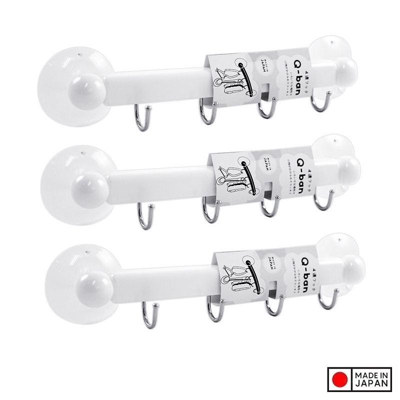✨Thanh nhựa 4 móc treo đồ núm hít chân không - New - Hàng Nội Địa Nhật Bản