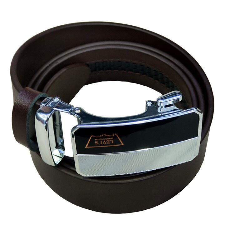 Thắt lưng nam da thật mặt khóa tự động bằng thép sáng bóng không gỉ