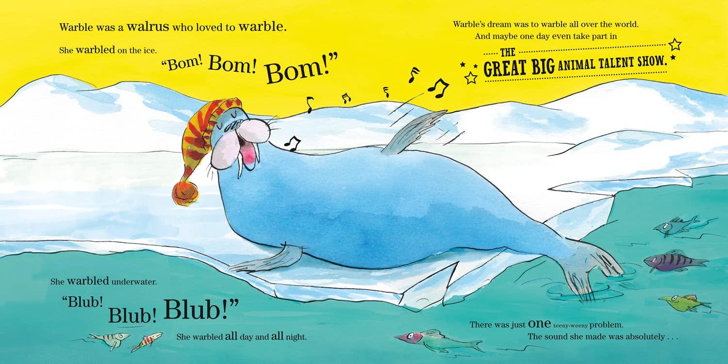 Unfortunately, she is not very good at it! And when her atrocious warbling causes an avalanche, the other walruses leave her all alone.