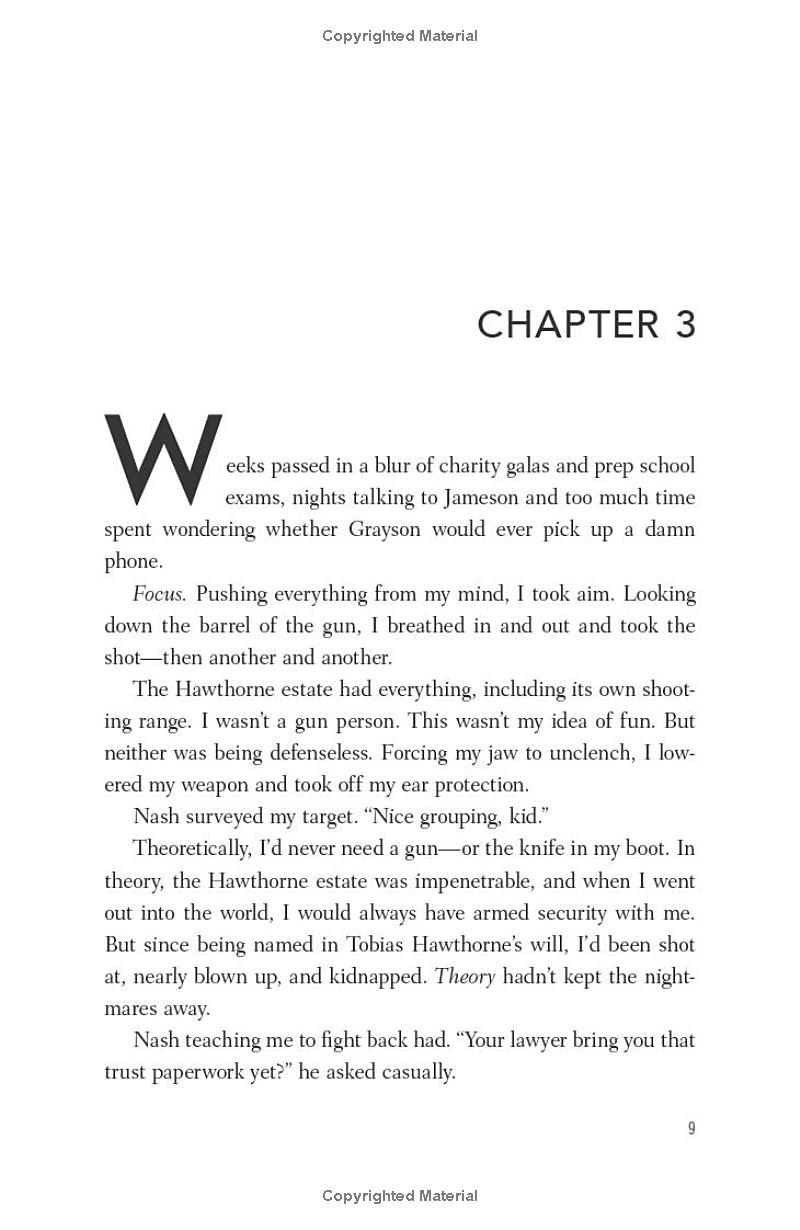 Against all odds, Avery has survived nearly a year of secrets, schemes, and love lost and found at Hawthorne House. She's weeks away from fulfilling the terms of Tobias Hawthorne's will and inheriting his billions.