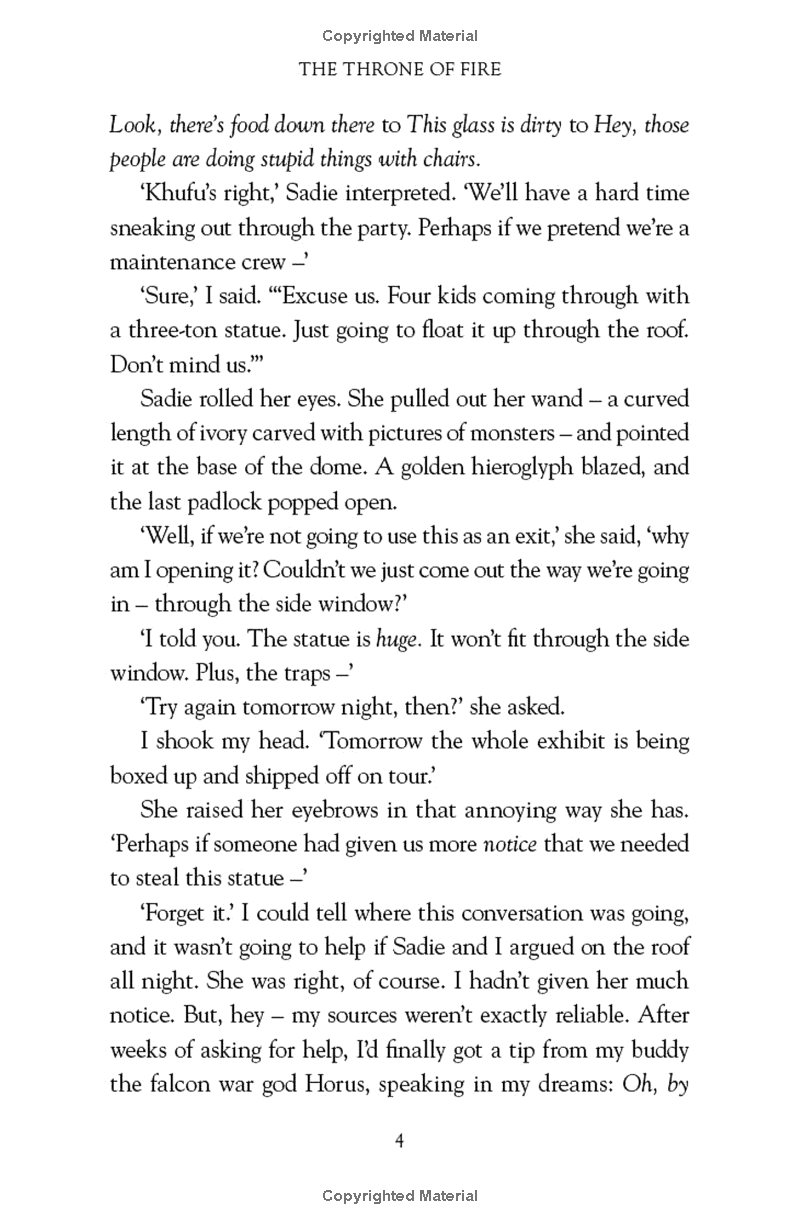 If Carter and Sadie don't destroy him, the world will end in five days' time. And in order to battle the forces of chaos, they must revive the sun god Ra - a feat no magician has ever achieved. Because first they must search the world for the three sections of the Book of Ra, then they have to learn how to chant its spells . . .
