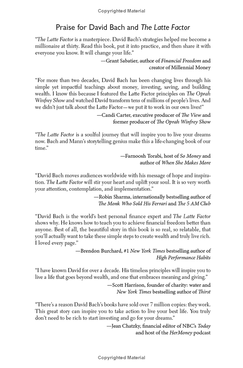 The Latte Factor: Why You Don't Have to Be Rich to Live Rich Discover #1 New York Times bestselling author David Bach’s three secrets to financial freedom in an engaging story that will show you that you are