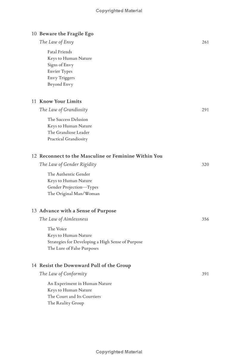 From the #1 New York Times-bestselling author of The 48 Laws of Power comes the definitive new book on decoding the behavior of the people around you Robert Greene is a master guide for millions of readers, distilling ancient wisdom and philosophy into essential texts for seekers of power, understanding and mastery. Now he turns to the most important subject of all - understanding people's drives and motivations, even when they are unconscious of them themselves. We are social animals. Our very lives depend on our relationships with people. Knowing why people do what they do is the most important tool we can possess, without which our other talents can only take us so far. Drawing from the ideas and examples of Pericles, Queen Elizabeth I, Martin Luther King Jr, and many others, Greene teaches us how to detach ourselves from our own emotions and master self-control, how to develop the empathy that leads to insight, how to look behind people's masks, and how to resist conformity to develop your singular sense of purpose. Whether at work, in relationships, or in shaping the world around you, The Laws of Human Nature offers brilliant tactics for success, self-improvement, and self-defense.