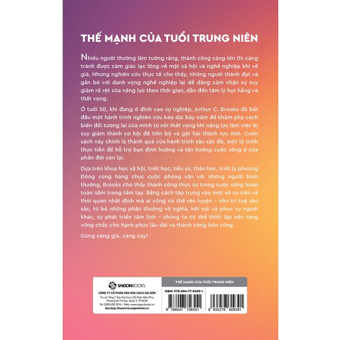 Bằng lập luận sắc bén và lối viết gần gũi, Arthur C. Brooks không chỉ giúp độc giả hiểu về quy luật tự nhiên của sự nghiệp và cuộc sống, mà còn đưa ra những hướng dẫn cụ thể để mỗi người có thể tận dụng tối đa thế mạnh của mình trong giai đoạn trung niên. Đây là một cuốn sách đáng đọc đối với bất kỳ ai mong muốn tìm kiếm thành công và hạnh phúc dài lâu.
